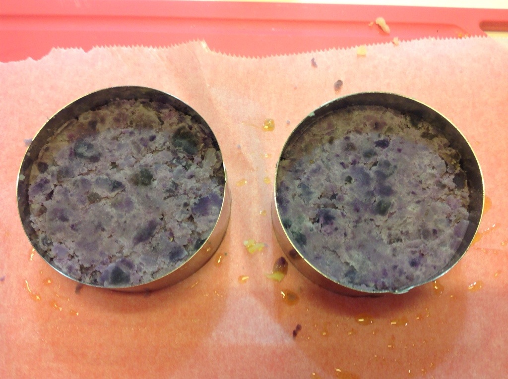 Riempio i coppa pasta con le patate prima uno strato di un colore poi l’altro