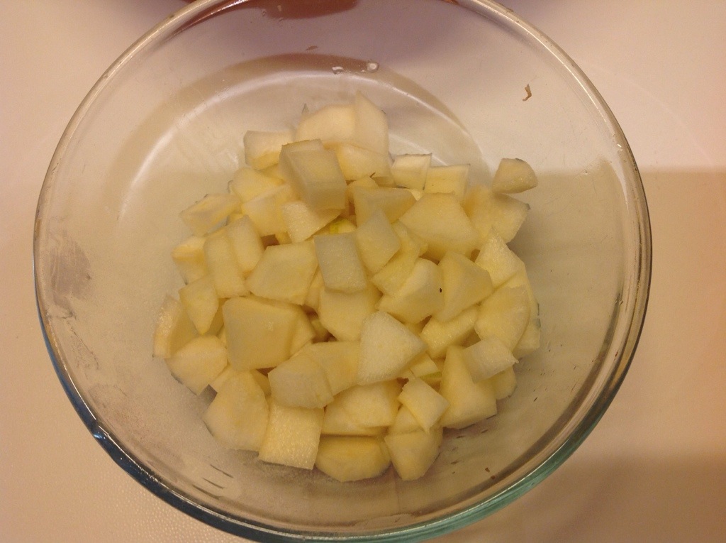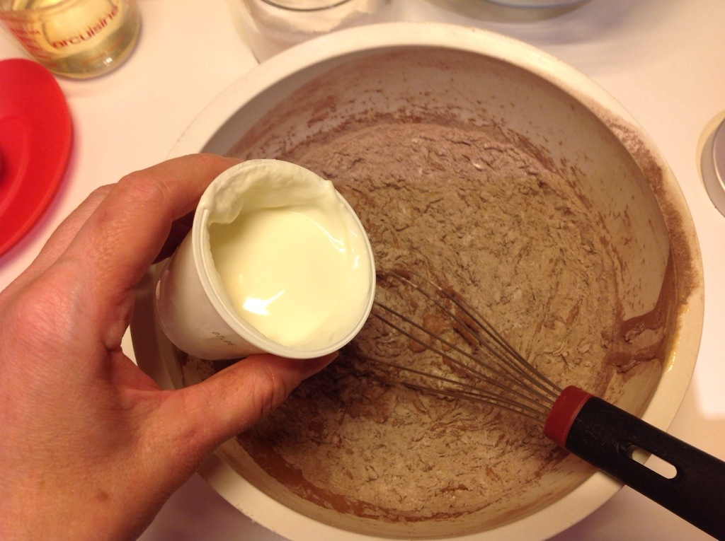 Trito grossolanamente il cioccolato fondente e lo distribuisco al centro dell’impasto