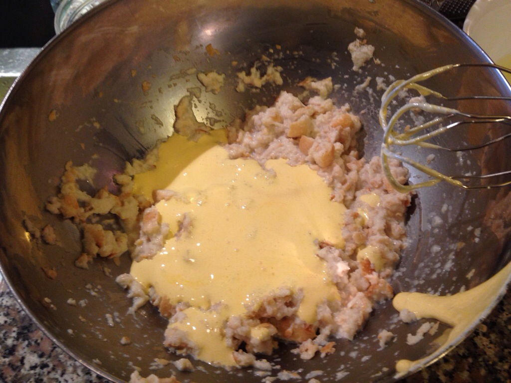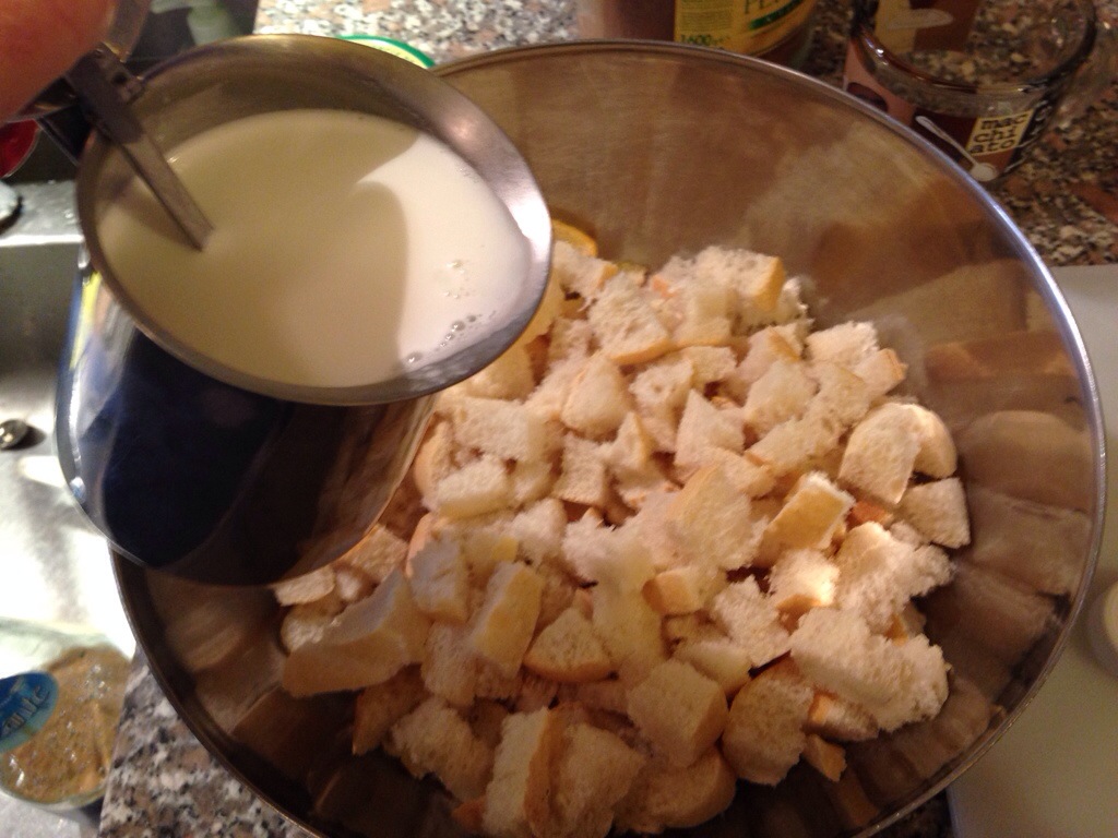 Li metto in una terrina e verso sopra il latte tiepido e li lascio ammorbidire mescolando ogni tanto