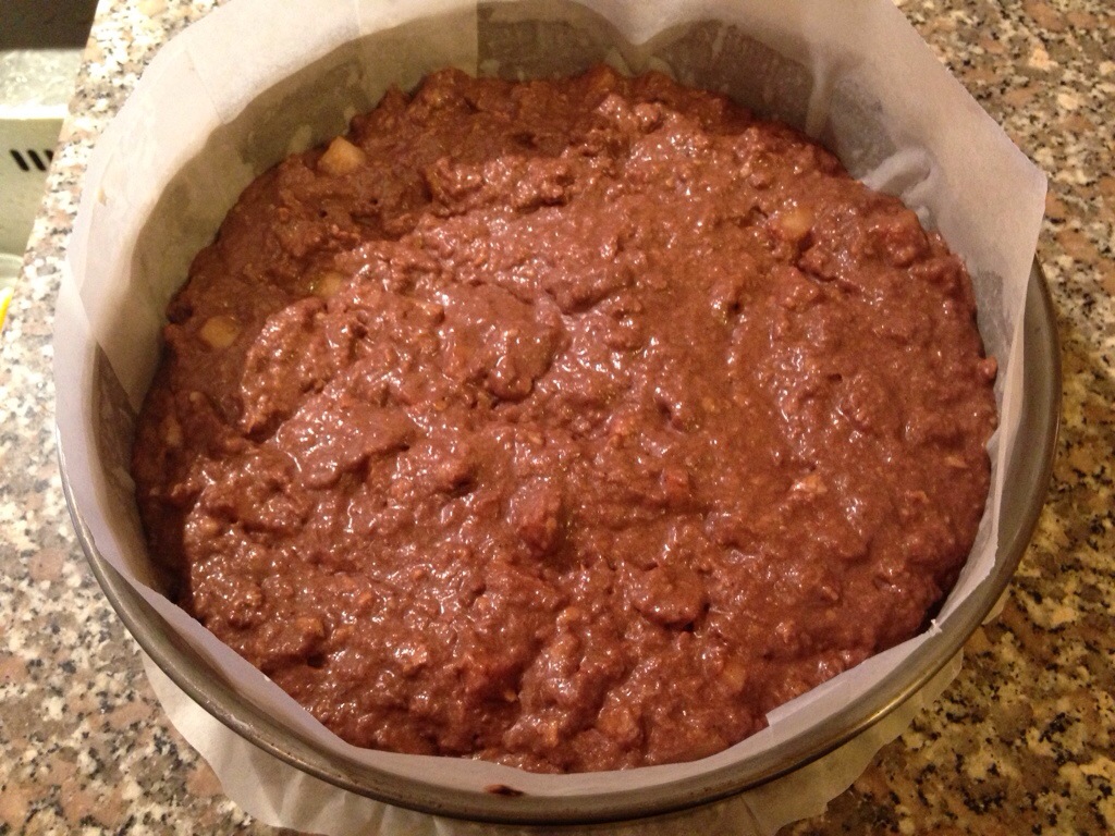 Rivesto una tortiera di carta forno, verso il composto e inforno per circa 50 minuti, passato il tempo provo ad infilare la punta di un coltello al centro, deve uscire pulito altrimenti date ancora qualche minuto