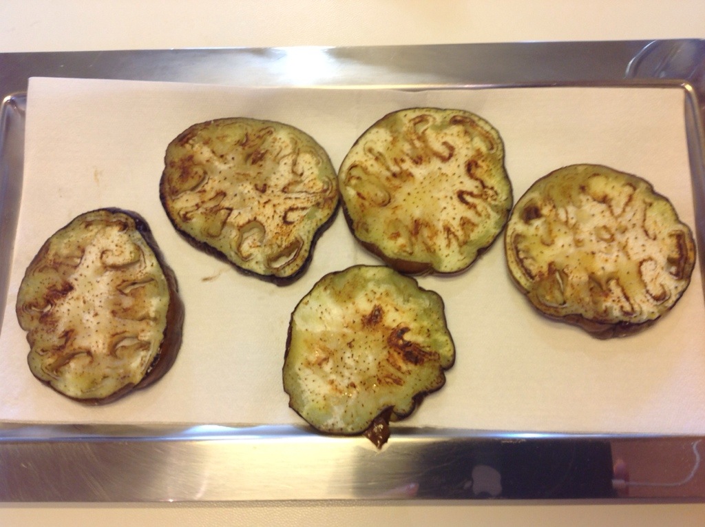 Taglio le melanzane a fette alte almeno 1 cm