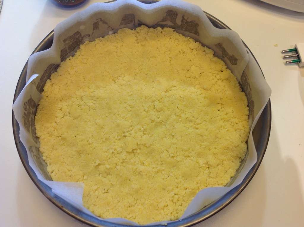 Verso metà impasto sul fondo della tortiera e lo compatto bene con le mani