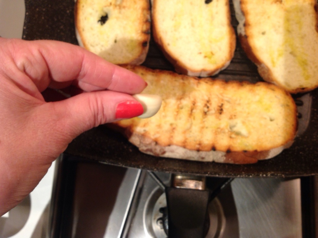 Quando sono tostate le strofino con uno spicchi di aglio
