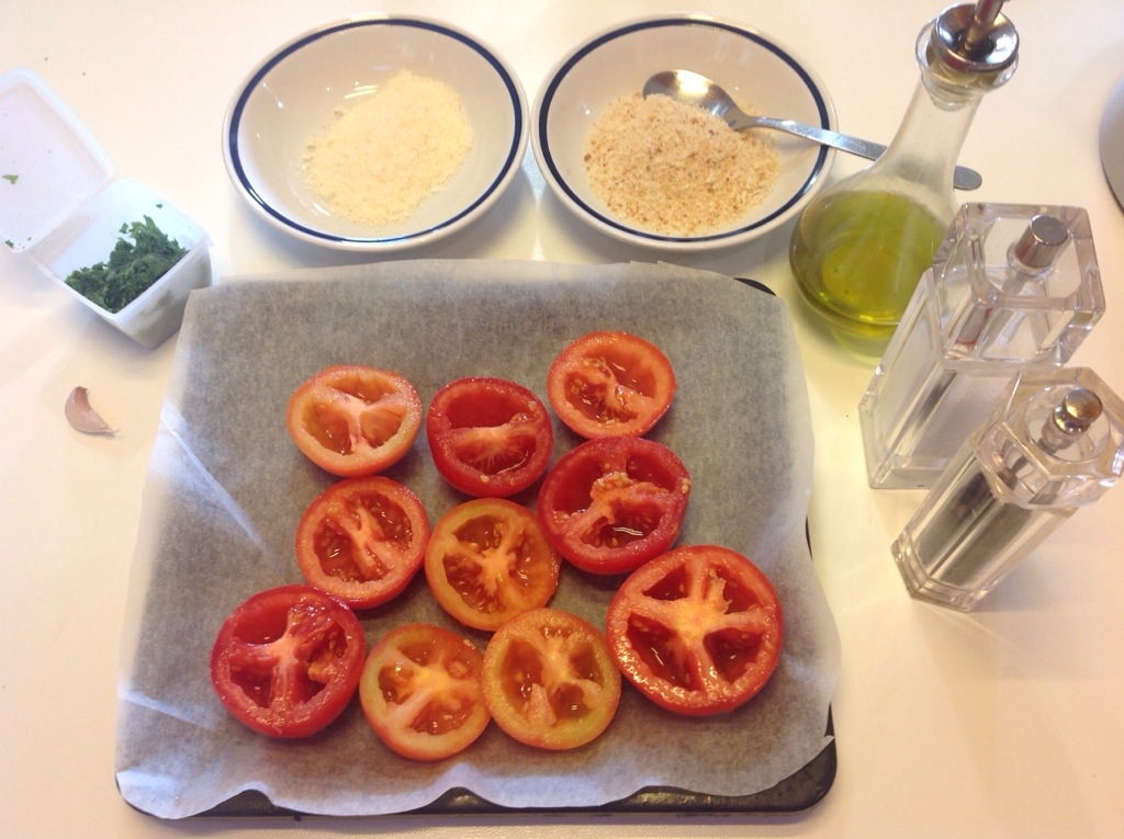 Cospargo i pomodori con la farcia irroro con un filo di olio e cuocio in forno preriscaldato a 180 gradi per circa 20 minuti