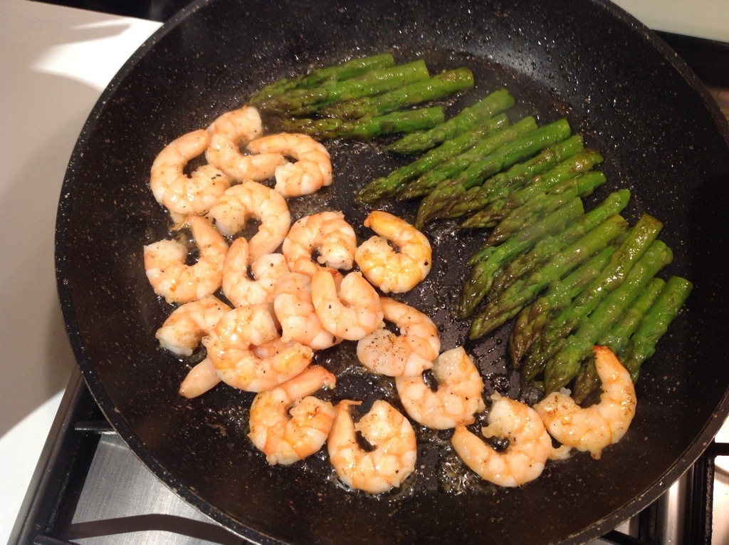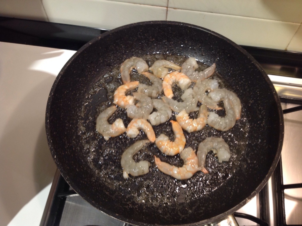 Li butto in acqua in ebollizione salata e quando vengono a galla li scolo e li aggiungo nella padella con i gamberi e lascio insaporire, se serve aggiungo qualche cucchiaio di brodo vegetale