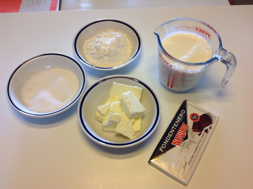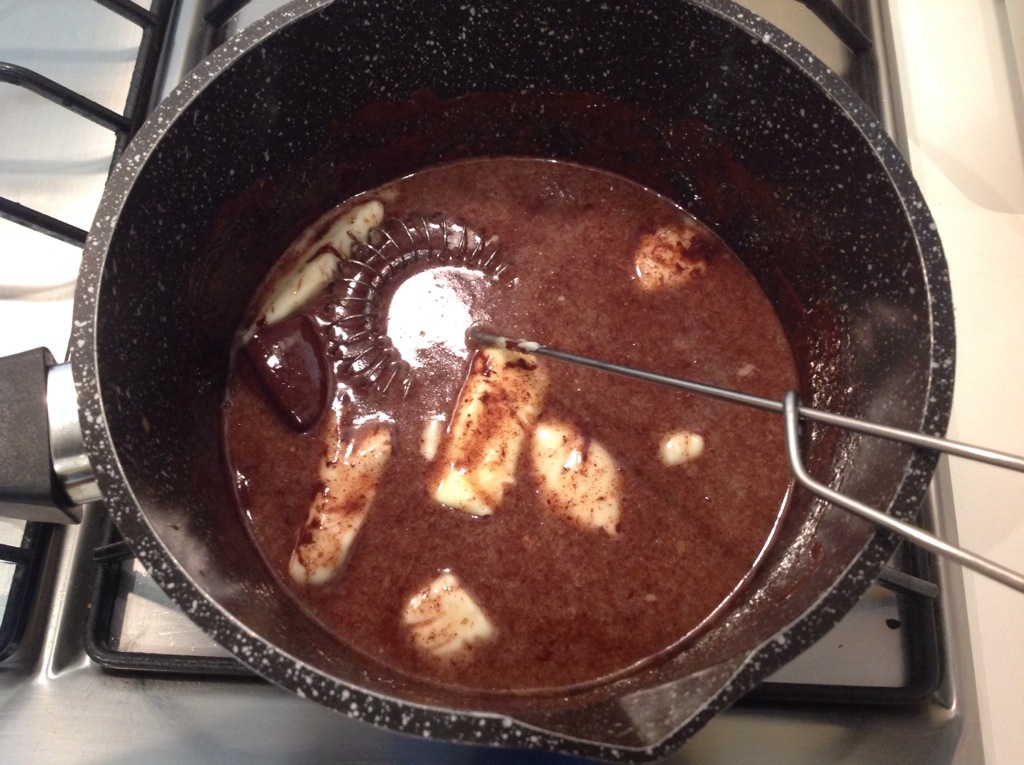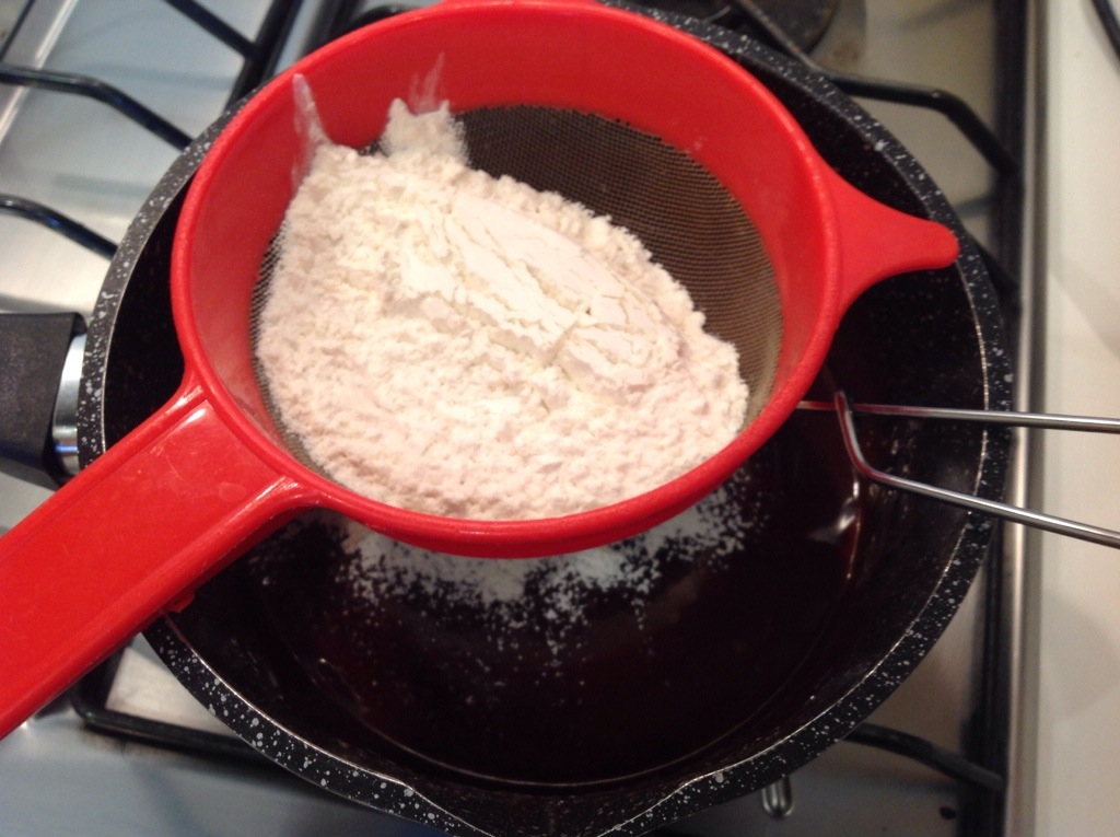 Tolgo dal gas e setaccio la farina unendolo al cioccolato
