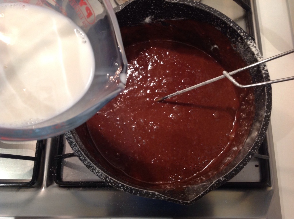 Mescolo con una frustina per evitare grumi e aggiungo il resto del latte