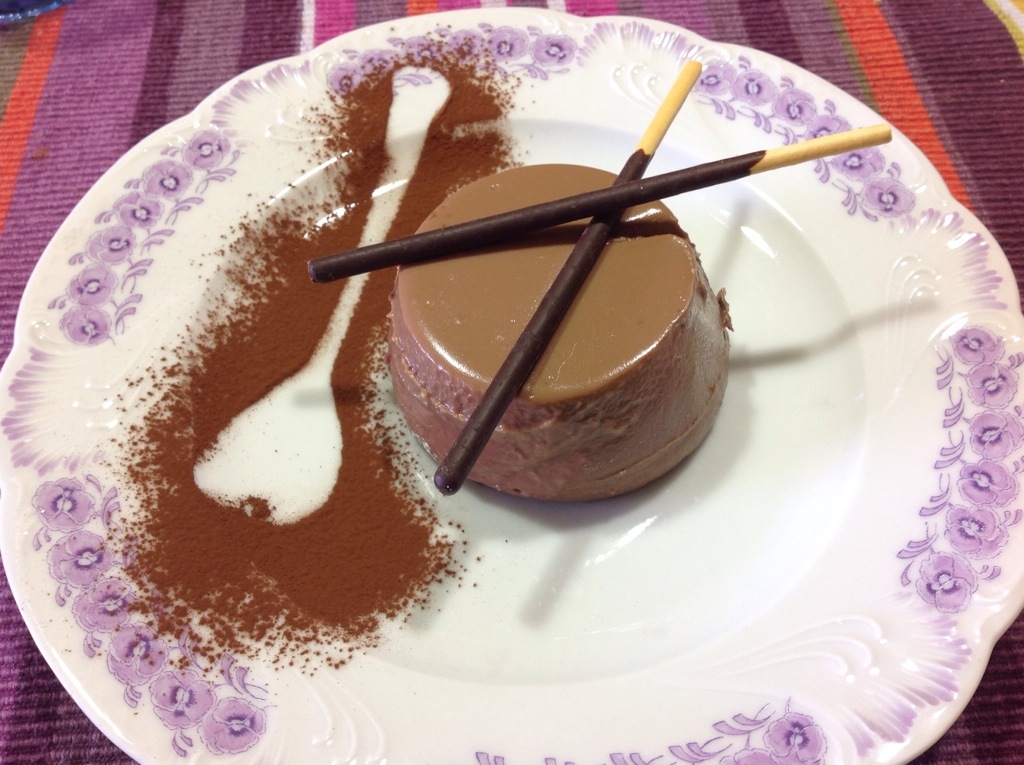 Al momento di servirlo per staccarlo agevolmente dallo stampino è sufficiente immergere lo stampino un secondo in acqua calda, poi passo un coltellino intorno al budino e rovescio nel piatto, decoro con panna montata o biscottini a vostro gusto