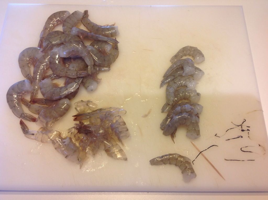 Pulisco le code dei gamberi dal carapace e dal budellino intestinale