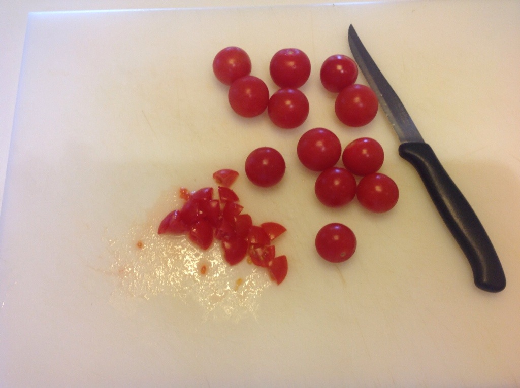 Taglio i pomodorini a cubetti