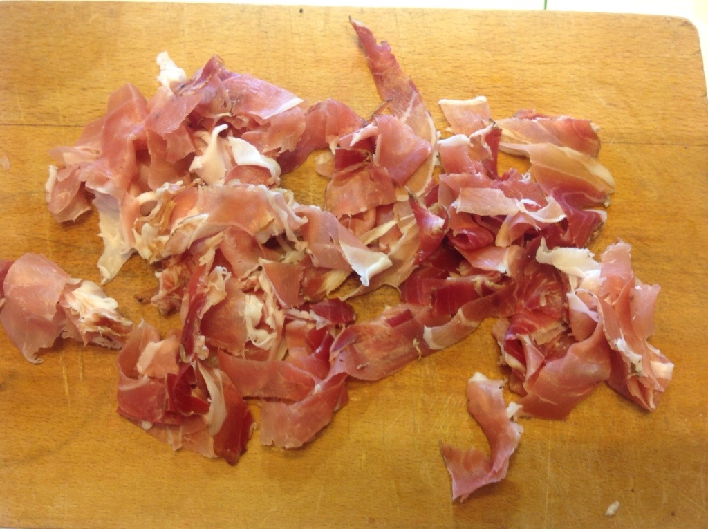 Taglio le fettine di Speck a striscioline