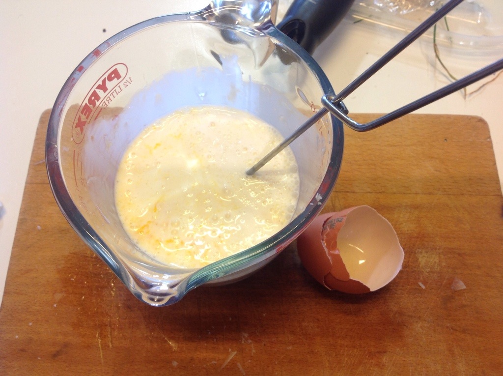 L’uovo intero, ancora poco sale e pepe e mescolo con una frustina