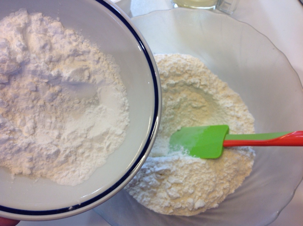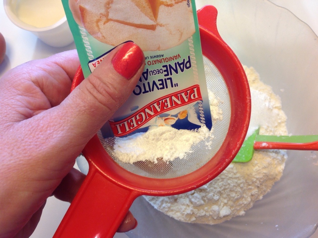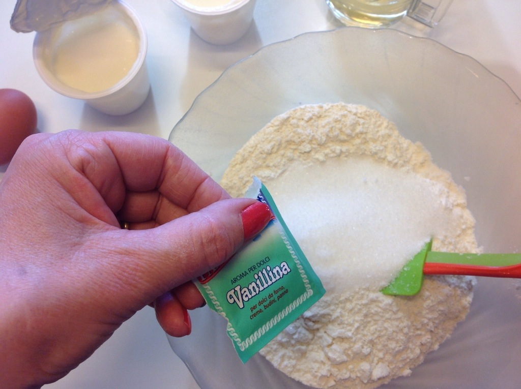 Verso il composto di yogurt sulla farina e mescolo velocemente