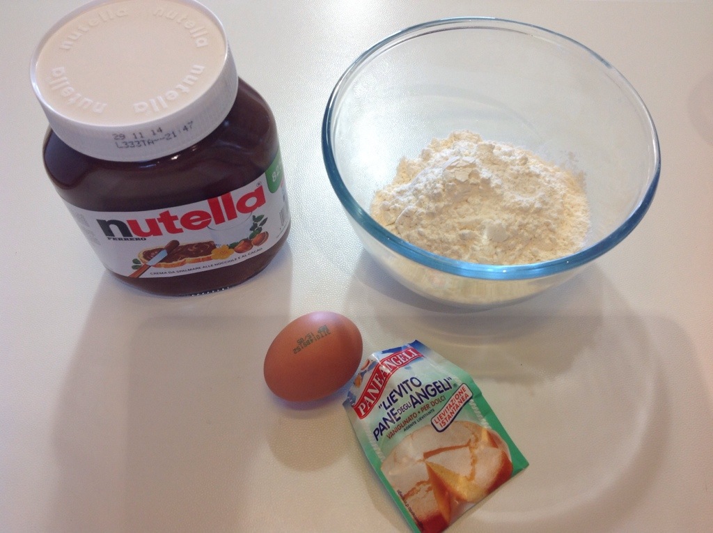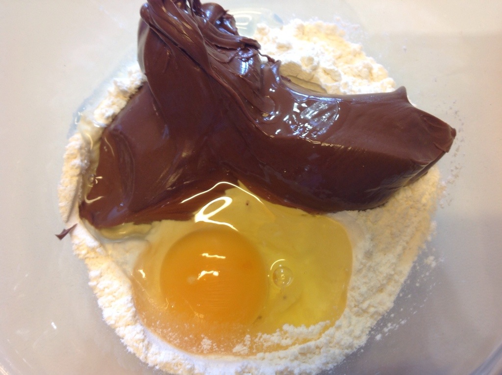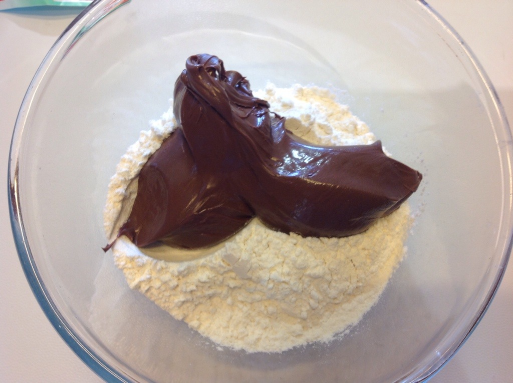 In una ciotola verso la farina e la Nutella