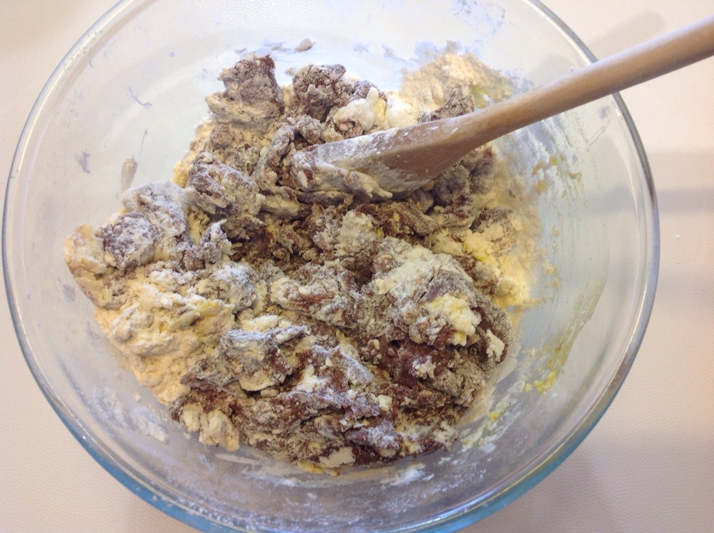 Mescolo con un mestolo di legno e ottengo un impasto grossolano