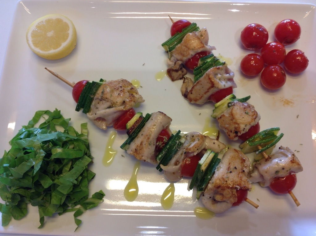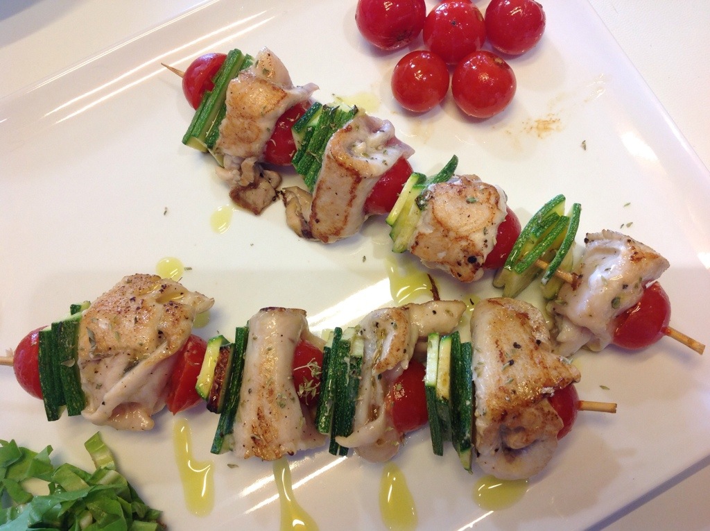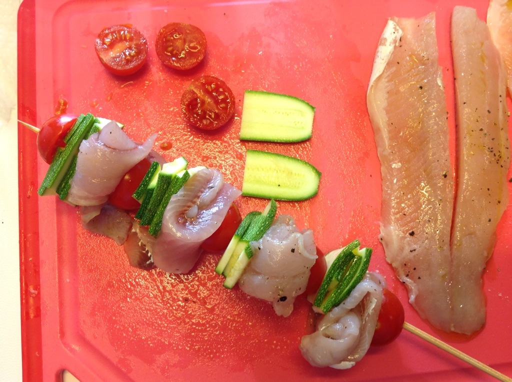 SPIEDINI DI COREGONE ZUCCHINE E POMODORINI