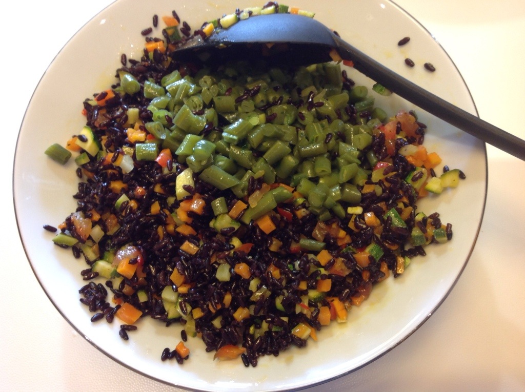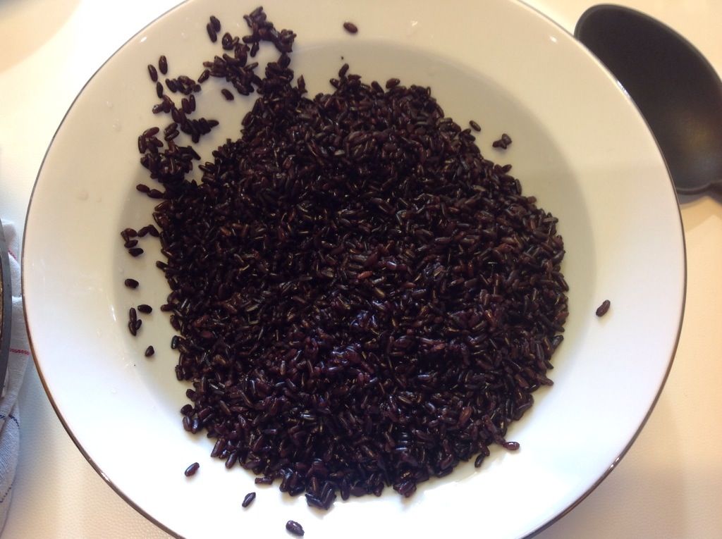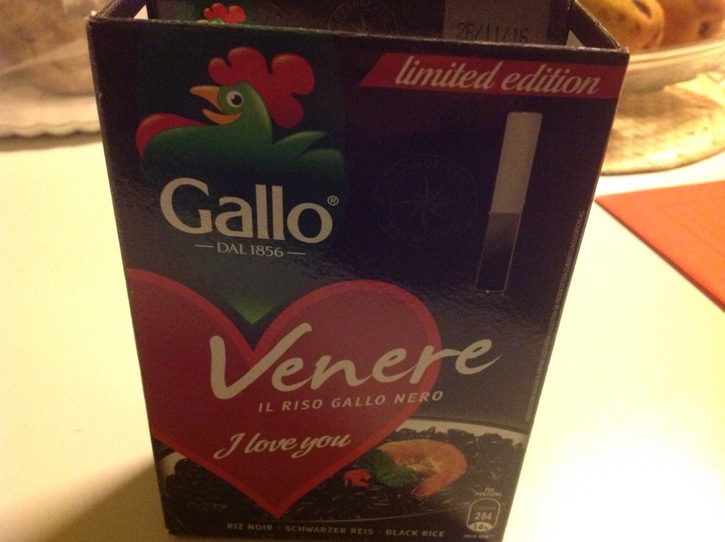 Lesso in acqua e sale il riso Venere, io ho adoperato il riso Gallo, ci vogliono 18 minuti di cottura in acqua leggermente salata