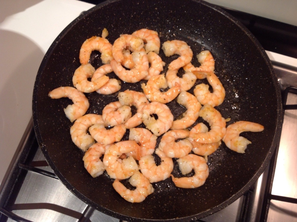 Pulisco le code dei gamberi togliendo il carapace e il budellino intestinale