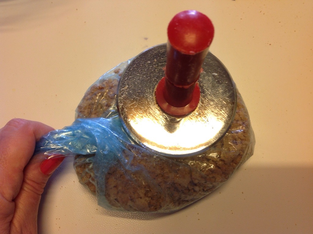 Lo chiudo e li batto con un batticarne sbriciolandoli grossolanamente