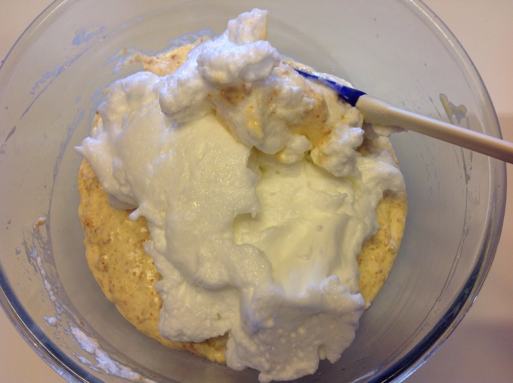 Mescolo delicatamente dal basso verso l’alto amalgamando bene