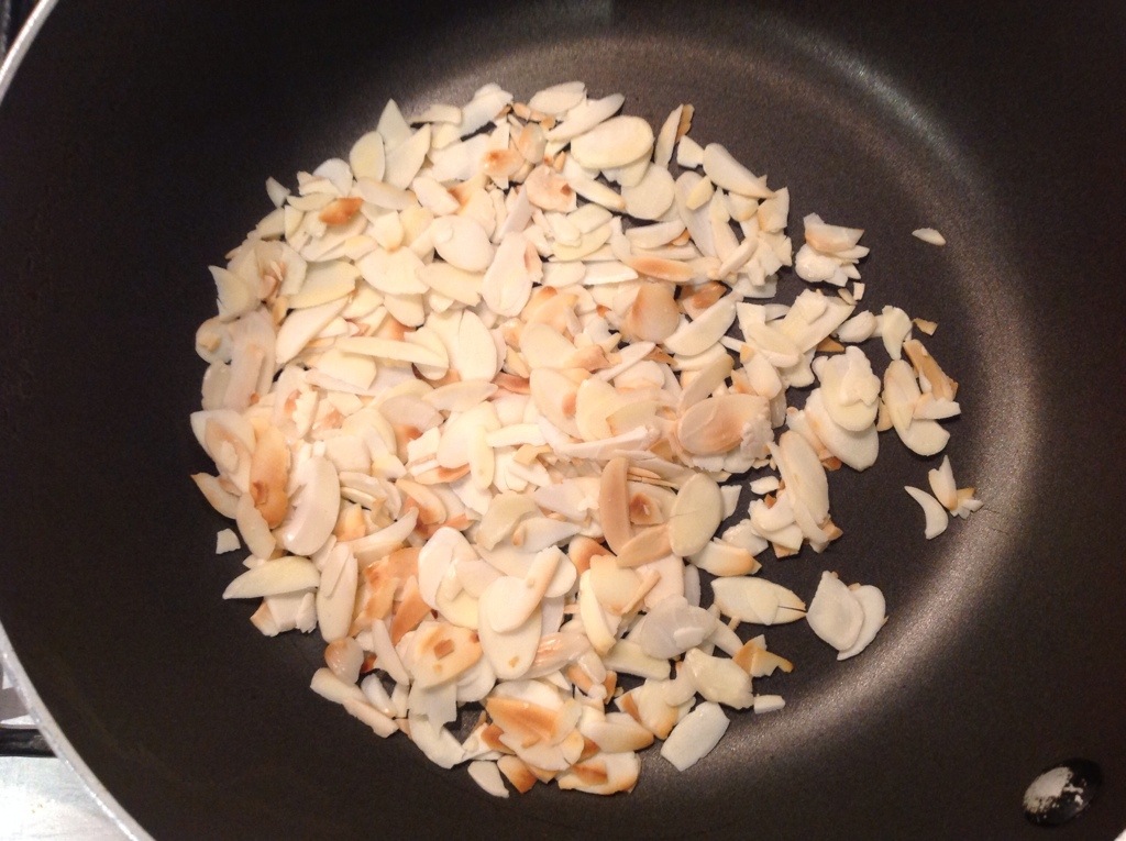 In un pentolino faccio tostare le lamelle di mandorle attenzione perché bruciano facilmente