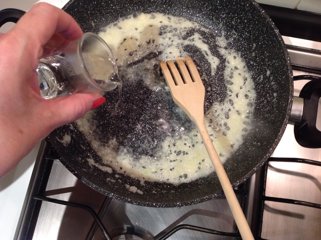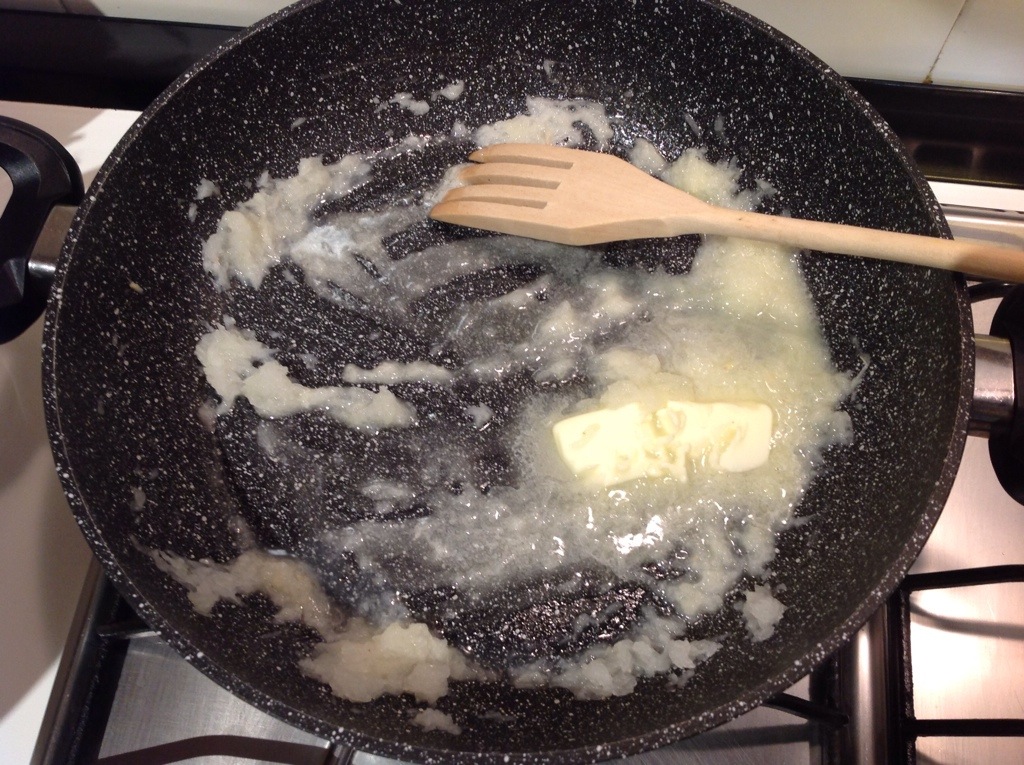 Verso un goccio di acqua e lascio cuocere per 5 minuti senza farla colorire, deve risultare una cremina