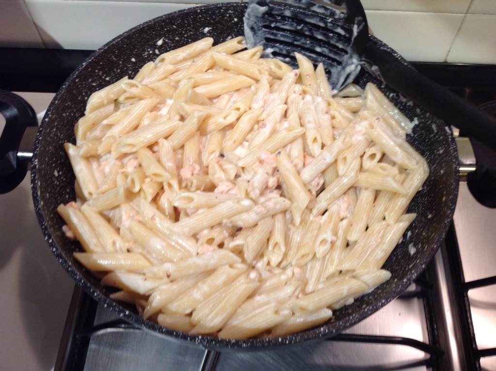 Lo aggiungo alla salsa e regolo di sale, assaggiatela perché il salmone è già saporito