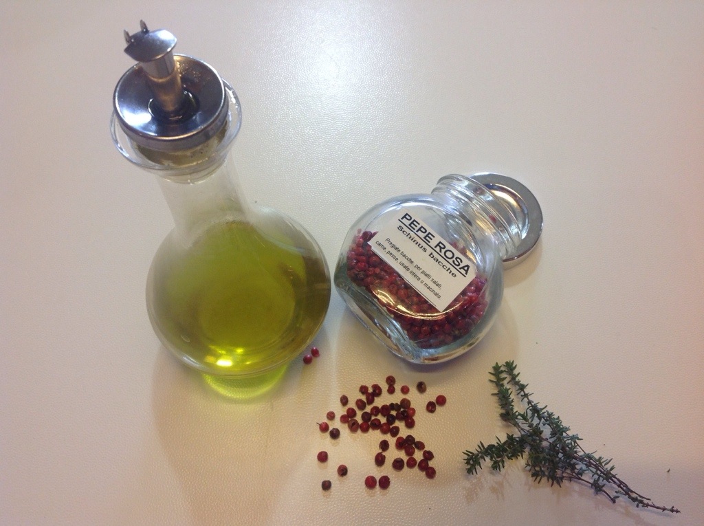 Verso la pasta nel sugo e salto velocemente aggiungendo timo e pepe rosa