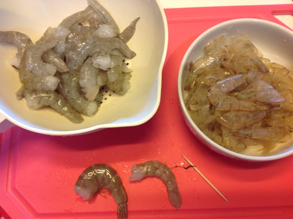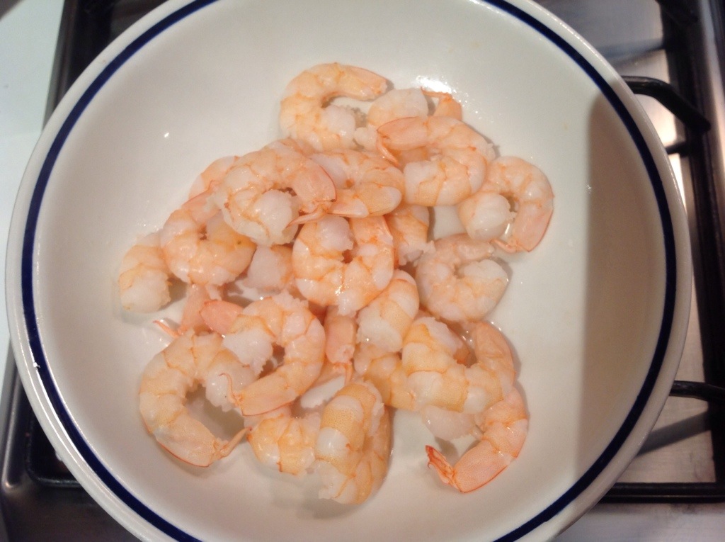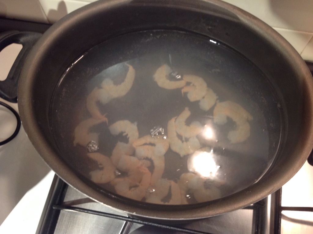 Porto a bollore l’acqua salata nella pentola in cui cuocio il riso, aggiungo le code per 3 minuti non cuocetele troppo altrimenti diventano gommose