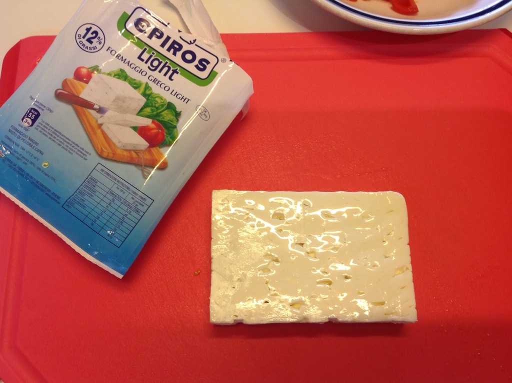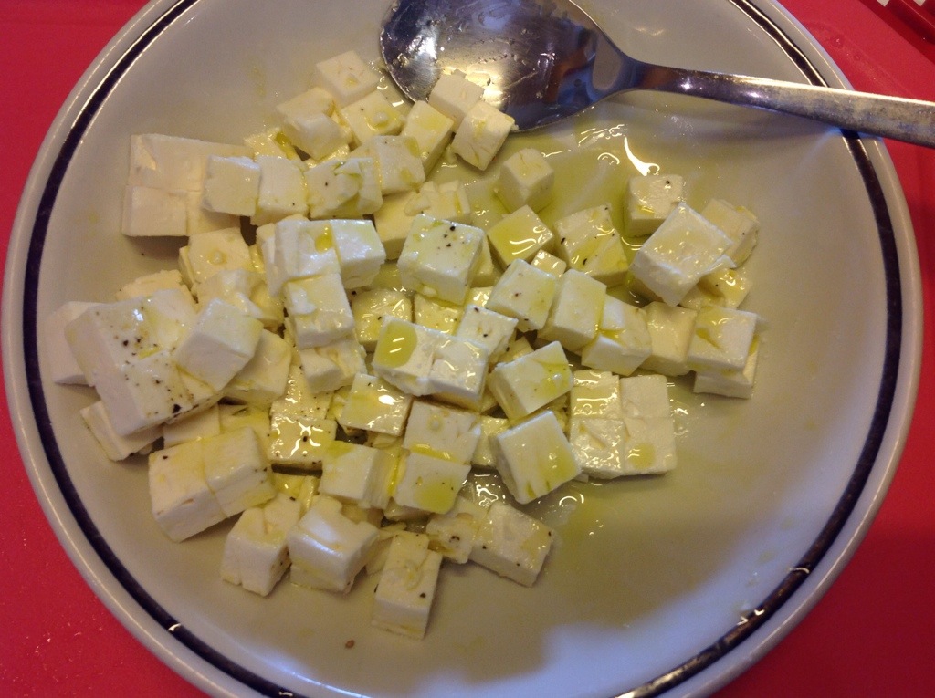Non mescolo tutto insieme perché altrimenti la Feta si rompe, ne aggiungo alcuni cubetti anche in superficie