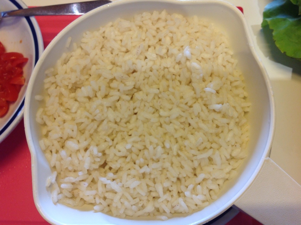 Nel frattempo faccio bollire il riso dove ho lessato i gamberi, lo cuocio al dente poi lo scolo e lo lascio raffreddare