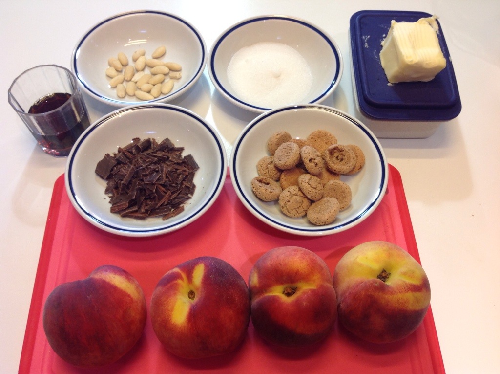 PESCHE RIPIENE AMARETTI MANDORLE CIOCCOLATO