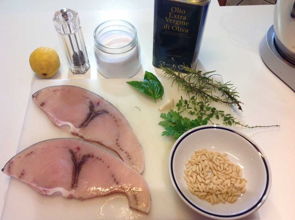 PESCE SPADA MARINATO ALLE ERBE AROMATICHE E PINOLI TOSTATI