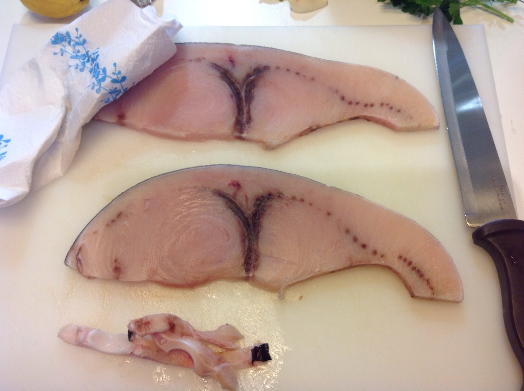 Lavo e asciugo bene le fette di spada, tolgo eventuali lische