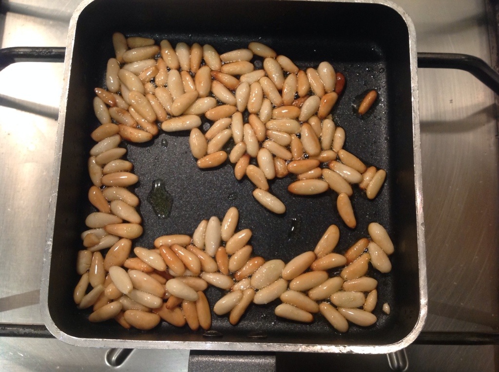 In un pentolino con un filo di olio faccio tostare i pinoli