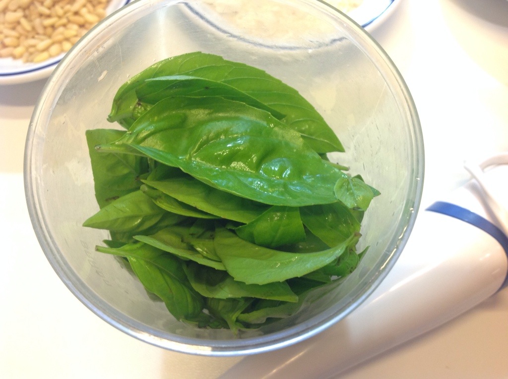 Aggiungo le foglie di basilico del mio orto, che ho lavato e asciugato