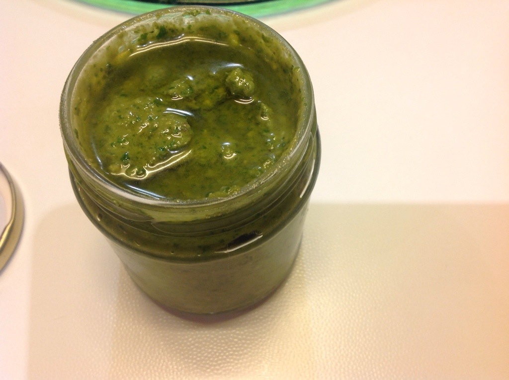 Quando è ben amalgamato verso il pesto in un vasetto se non lo adopero subito e lo ricopro con olio perché tende a scurire, altrimenti condisco la pasta, ottime le trofie