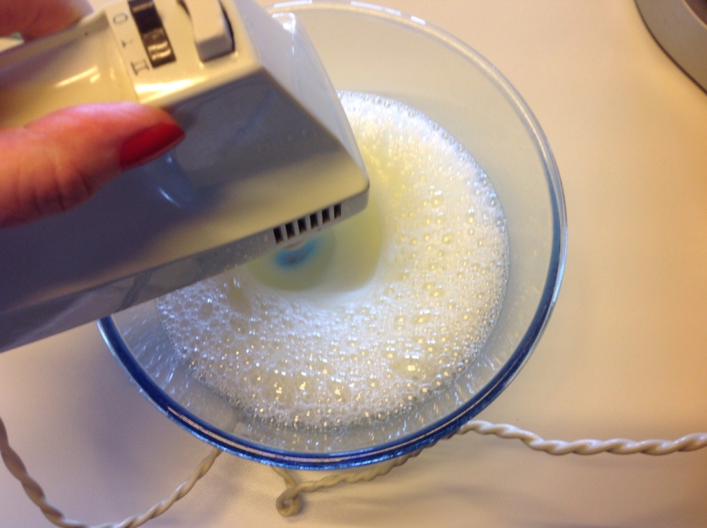 Monto a neve, con le fruste elettriche, gli albumi che devono essere a temperatura ambiente, con un pizzico di sale