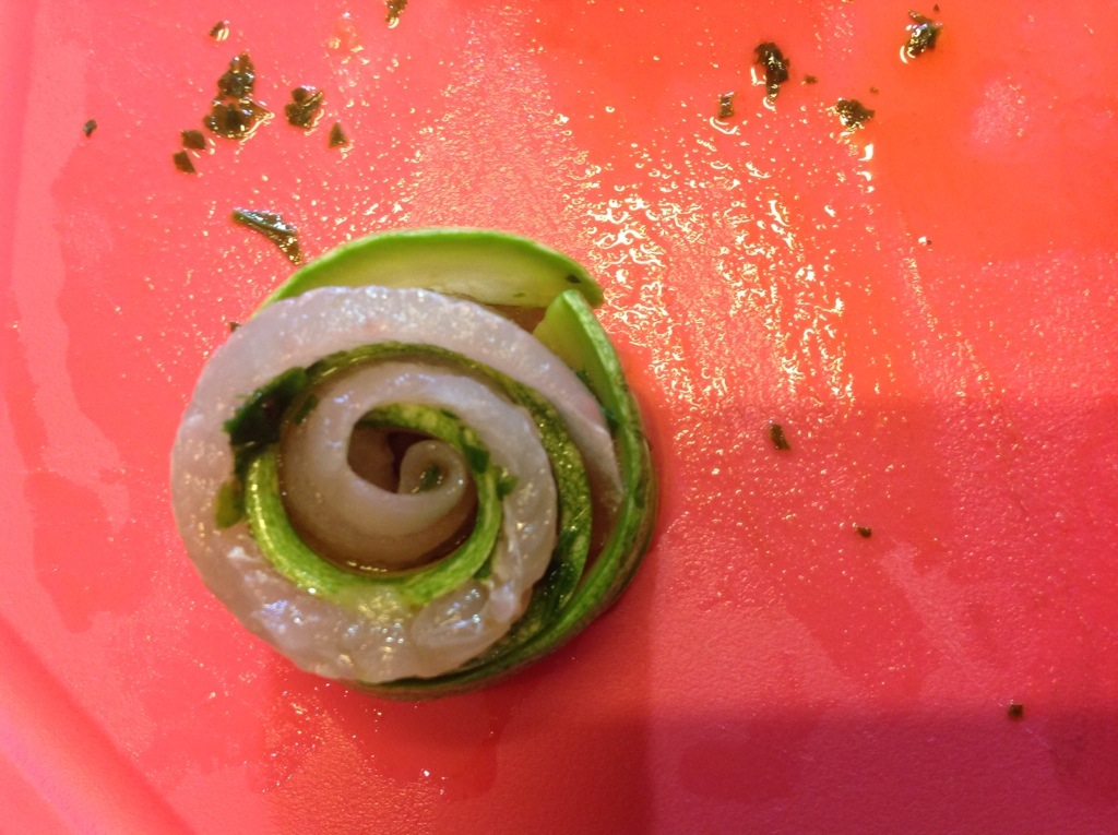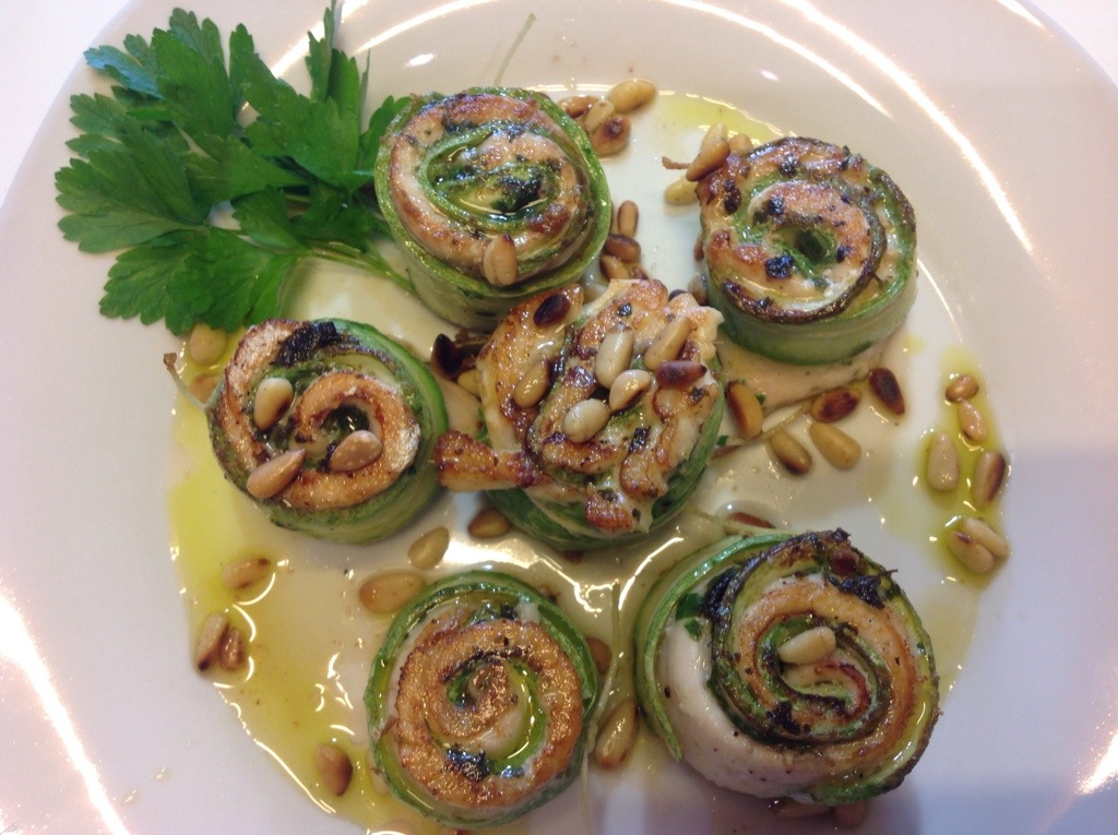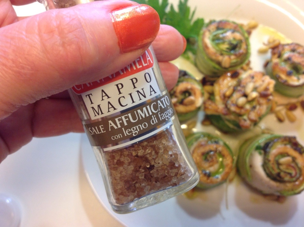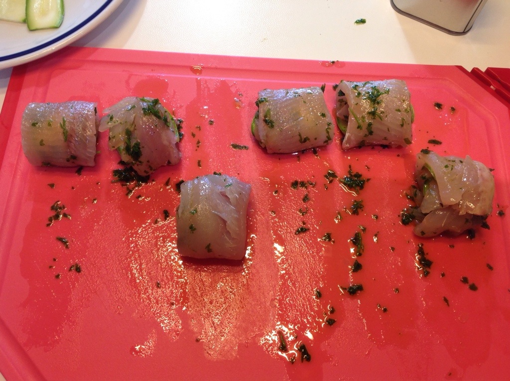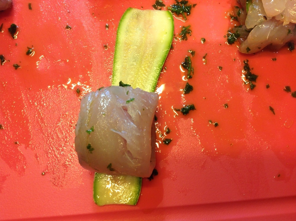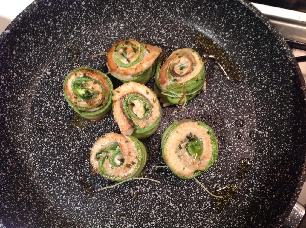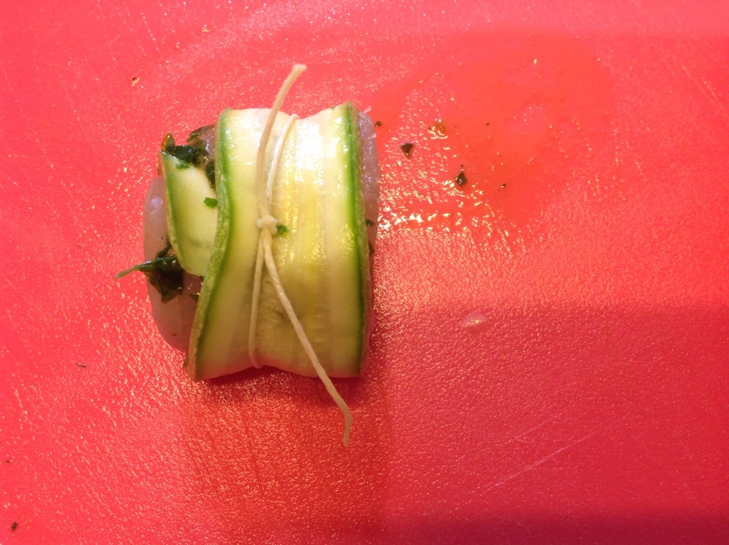 Avvolgo nuovamente ogni rotolino con una fettina di zucchina