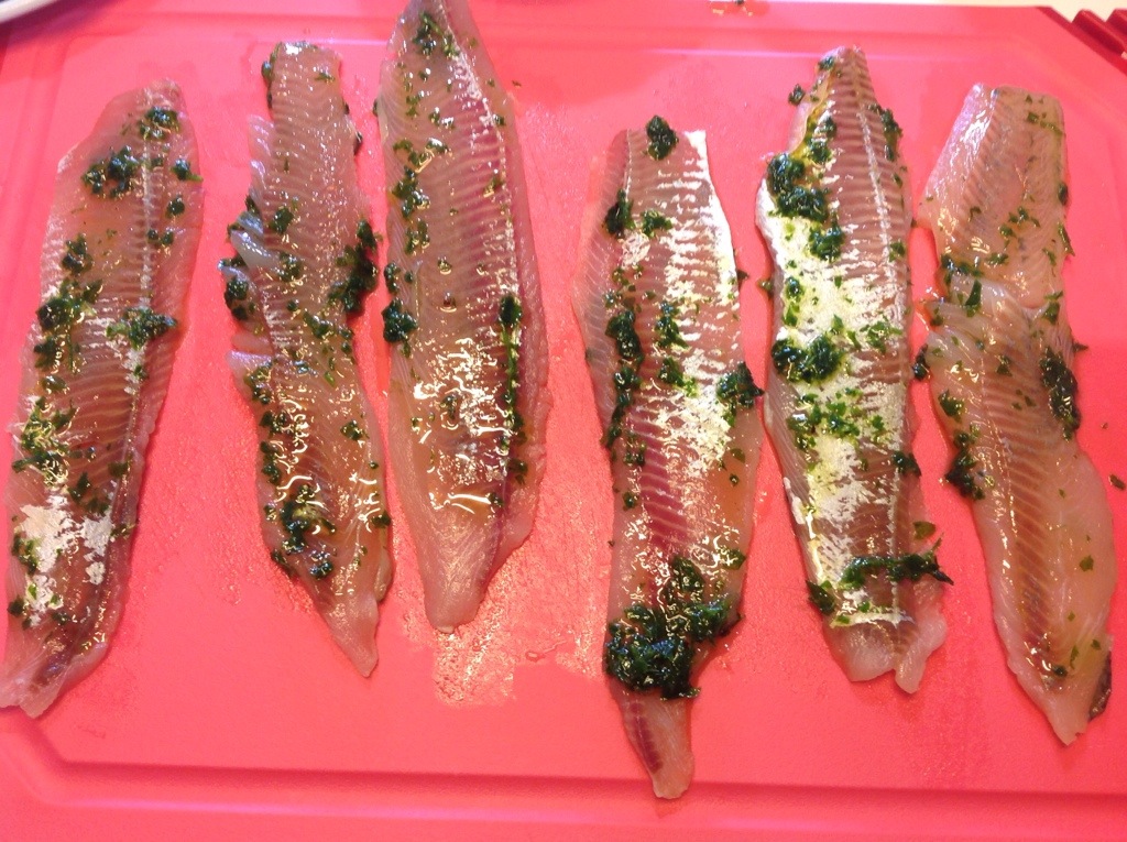 Li cospargo da ambo i lati con la salsina al prezzemolo dopo aver tolto l’aglio