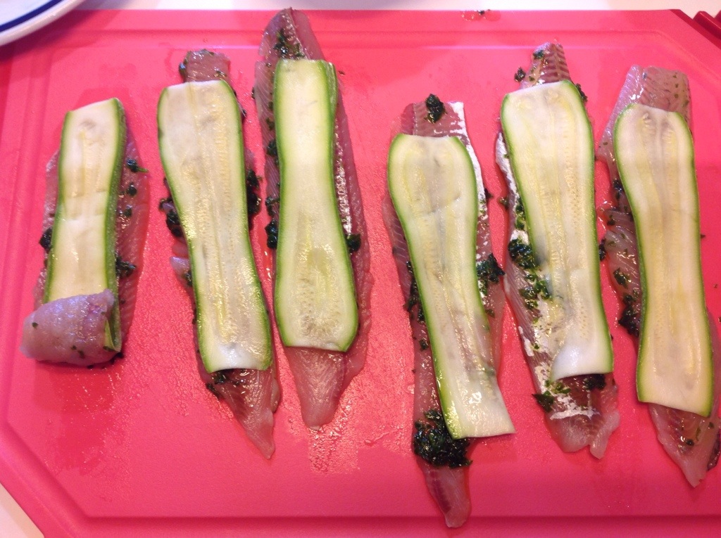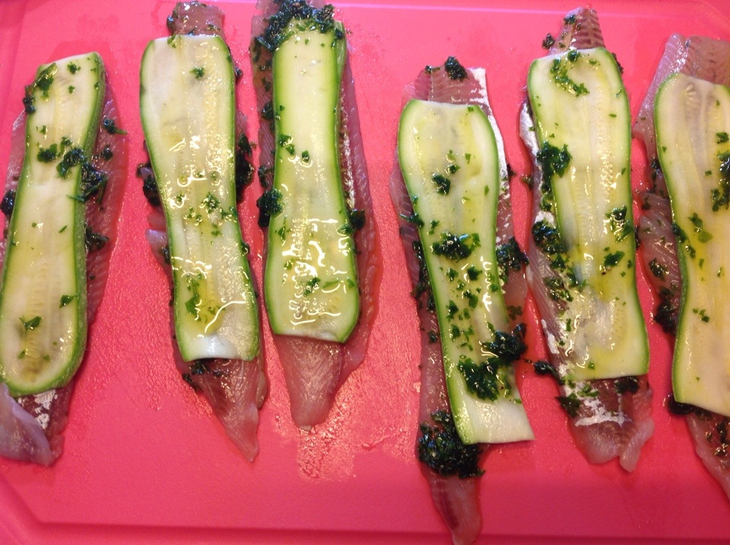 Appoggio sopra una fettina di zucchina che ho risciacquato e asciugato sul lato del filetto dove è stata tolta la pelle