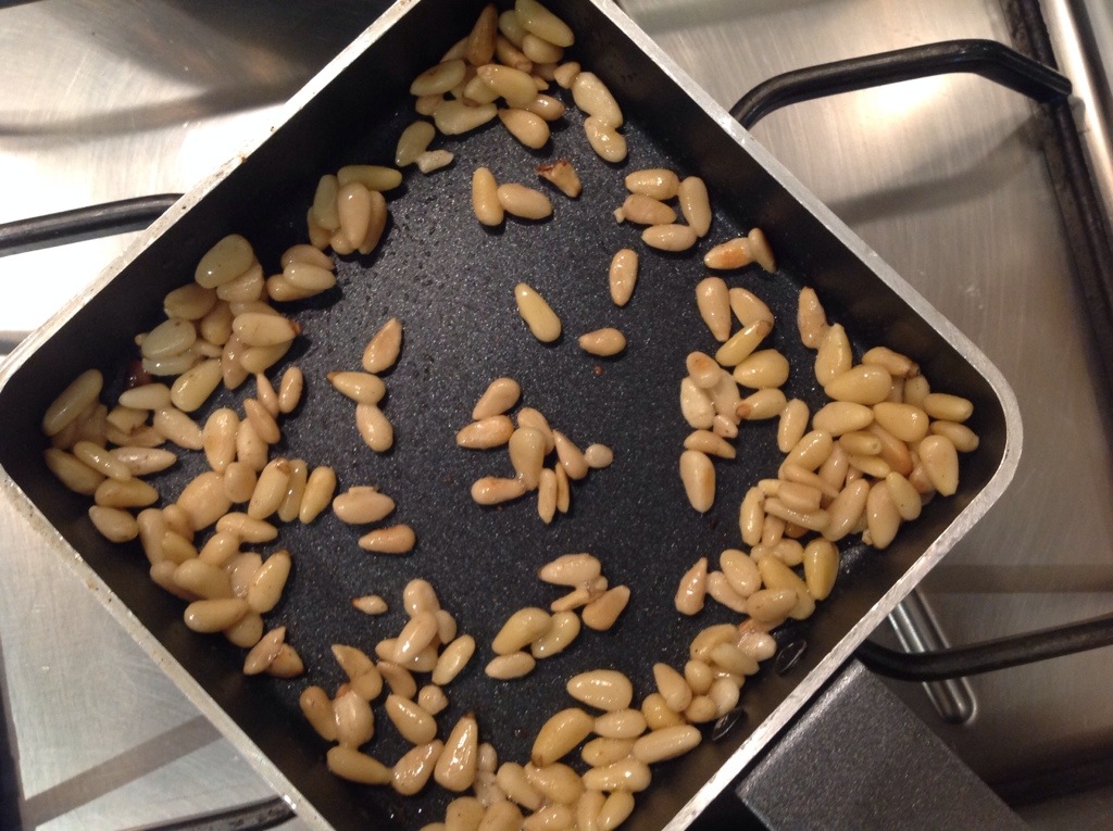 In un pentolino con un filo di olio faccio tostare i pinoli