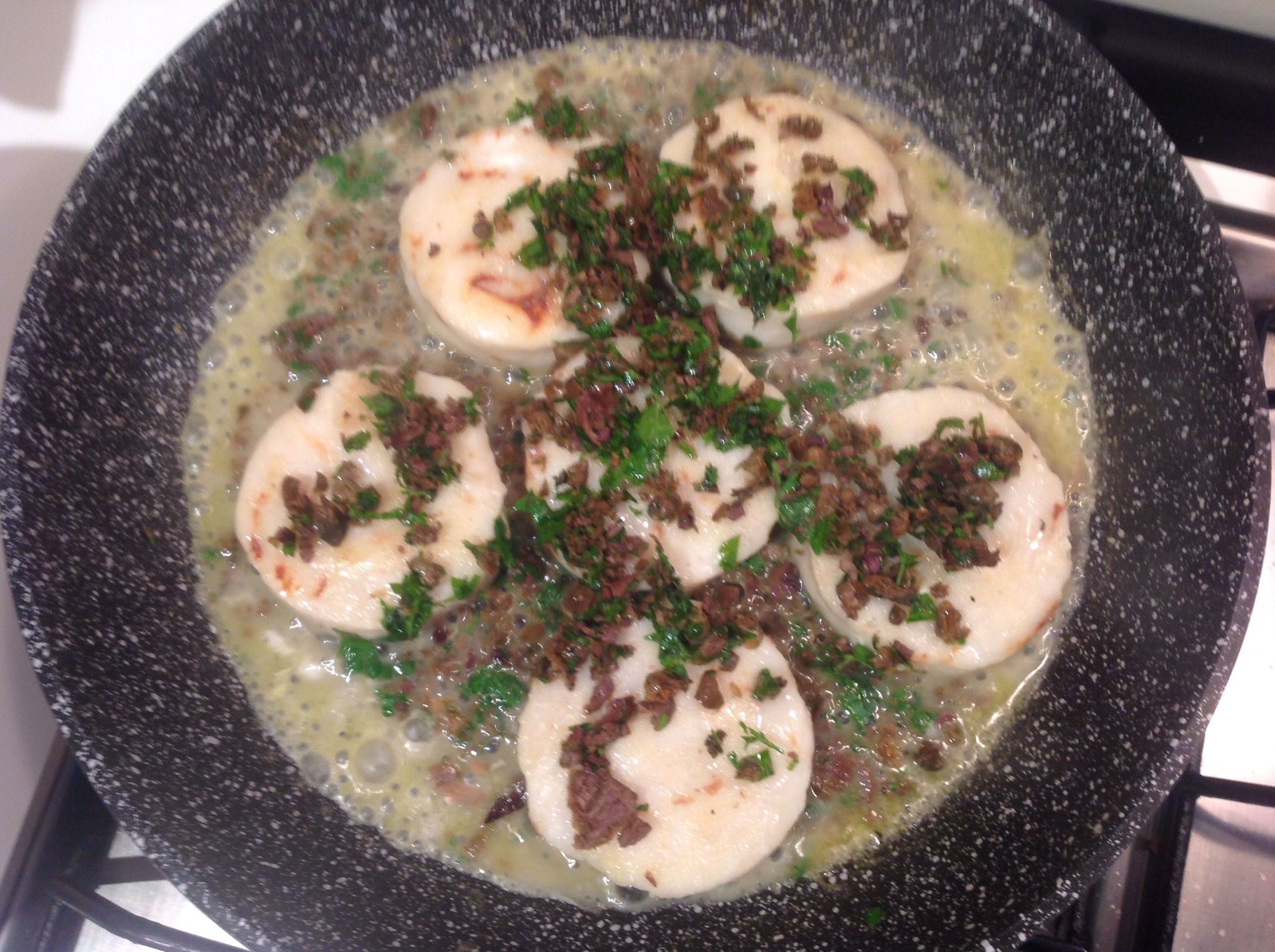 Giro i medaglioni e sfumo con il vino bianco