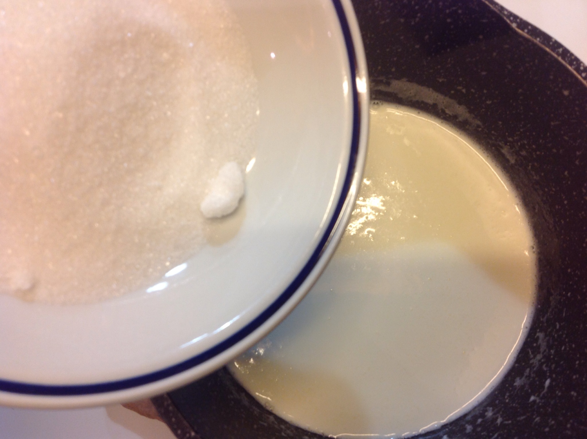 Aggiungo lo zucchero, la vaniglia mescolando finché è tutto sciolto
