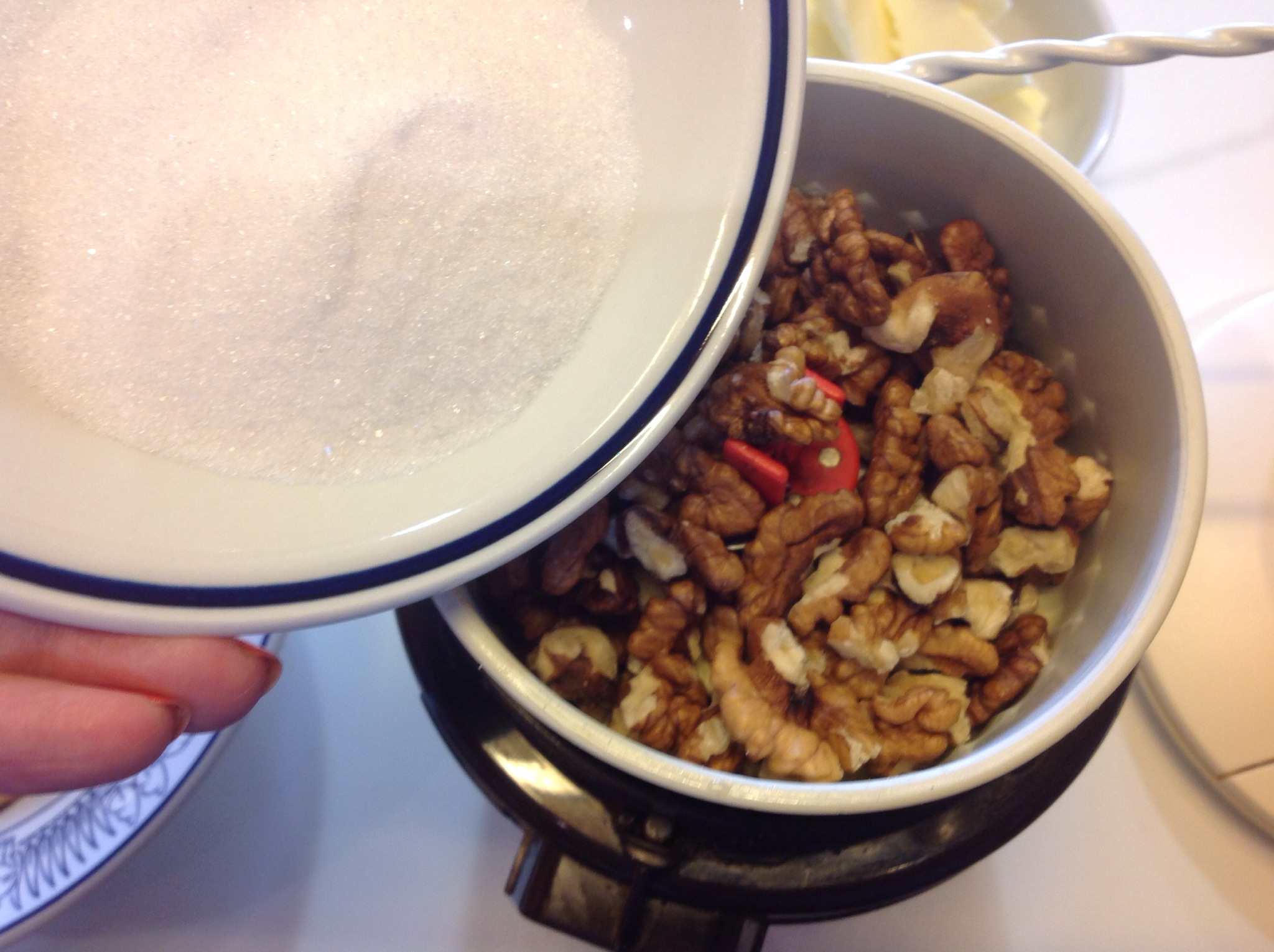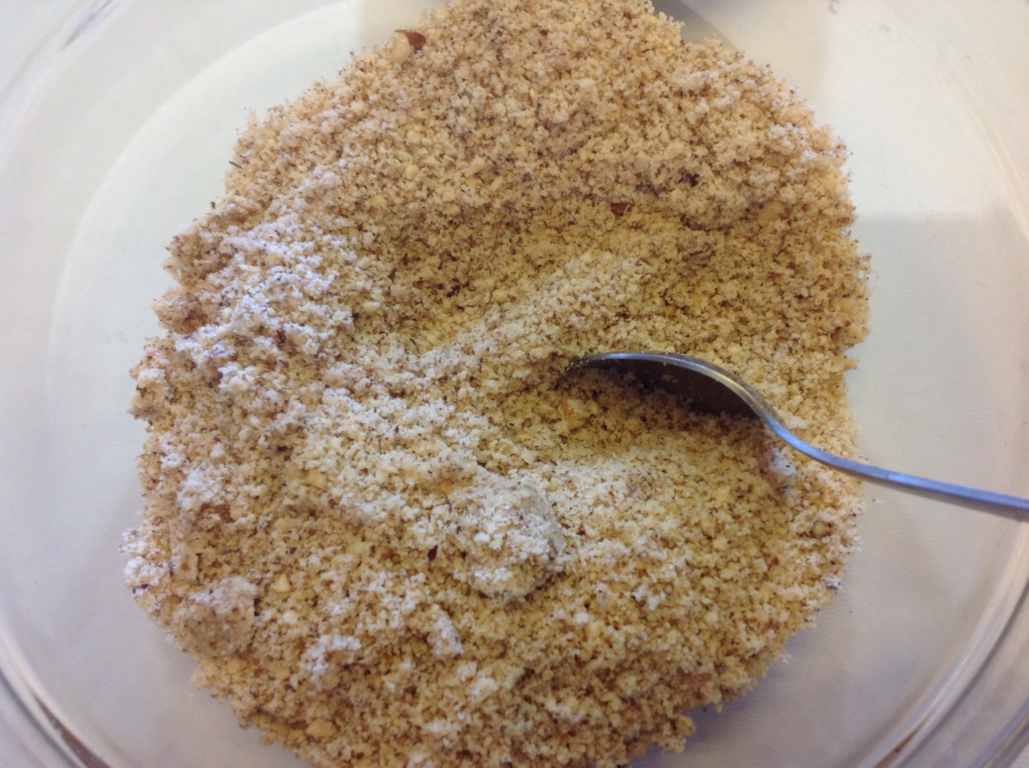 Intanto che le uova montano trito le noci con i 50 gr di zucchero rimasti