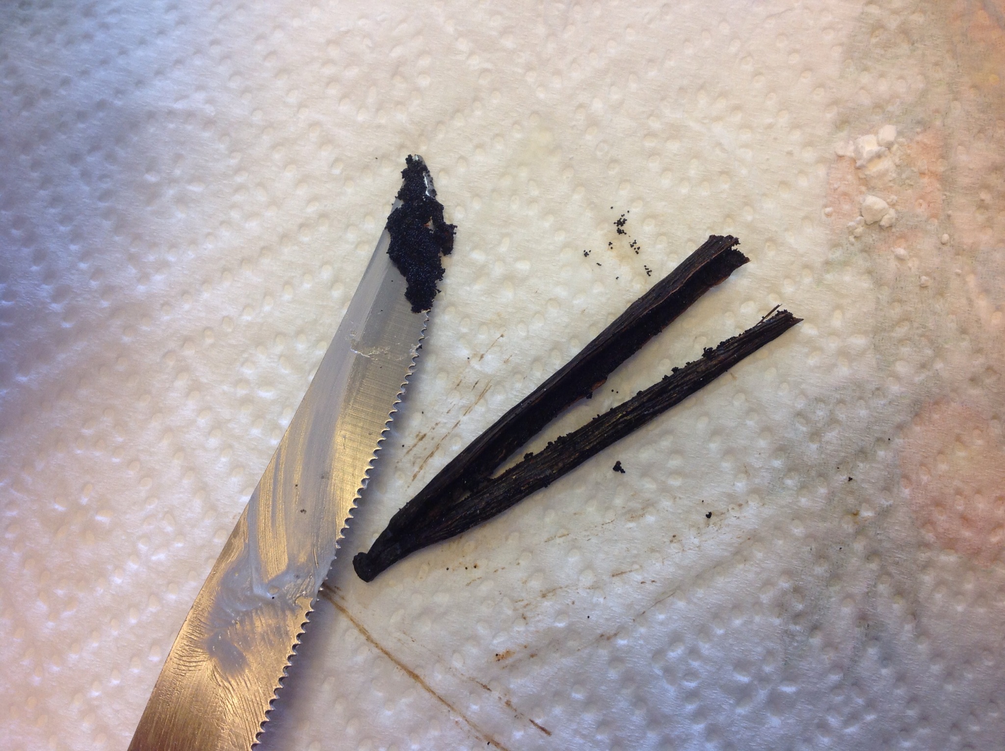 Taglio a metà la bacca di vaniglia e tolgo i semi