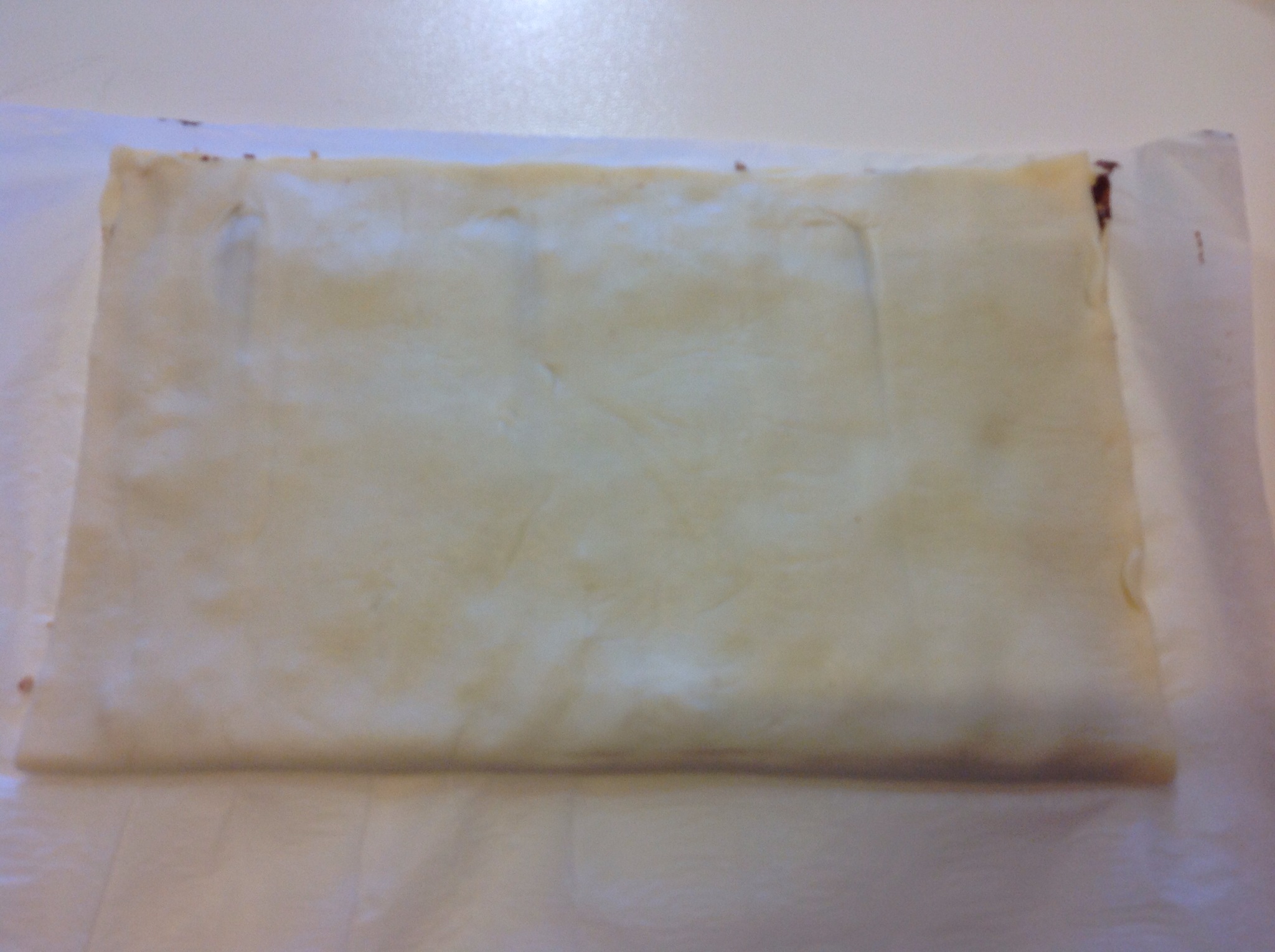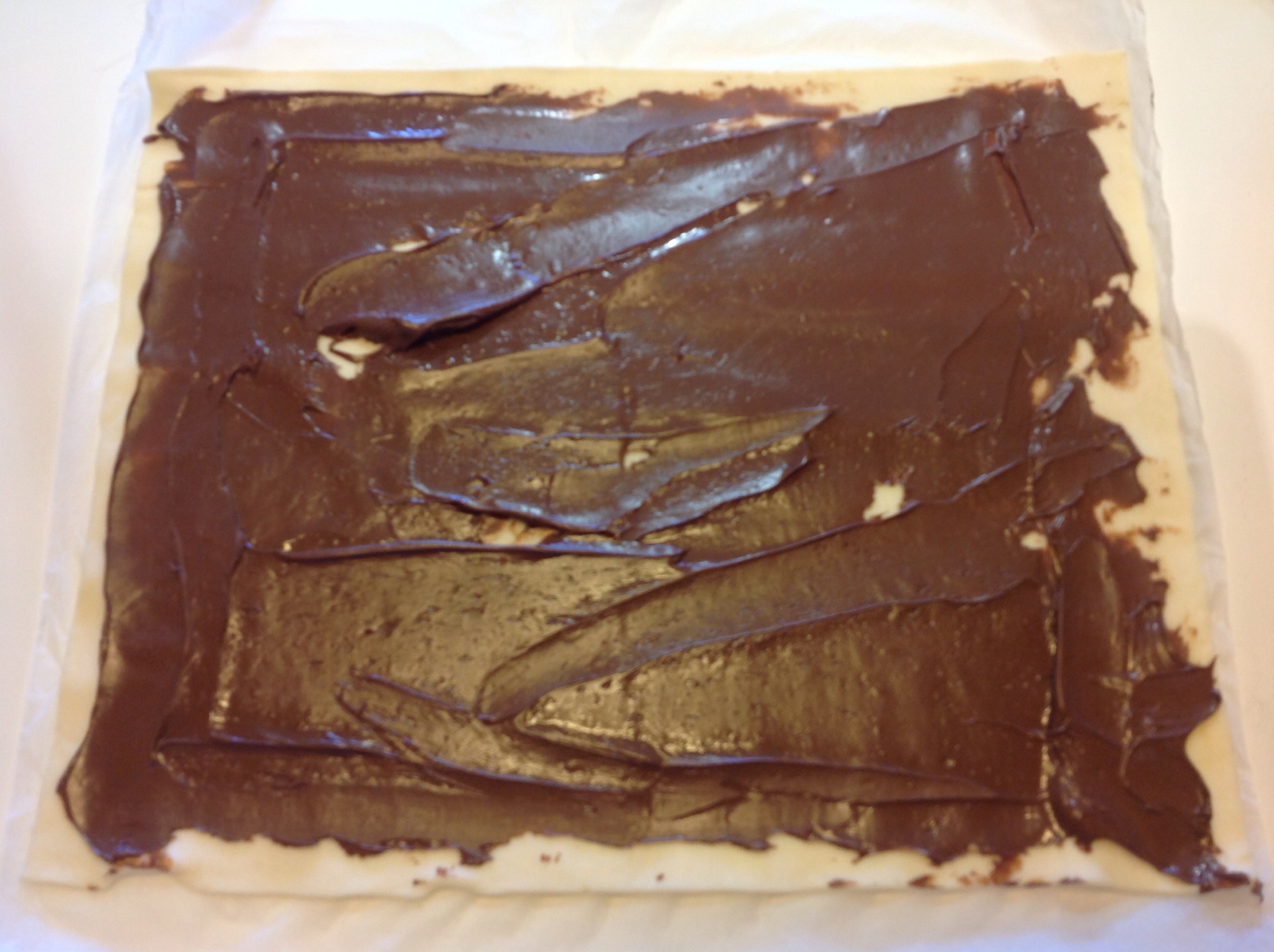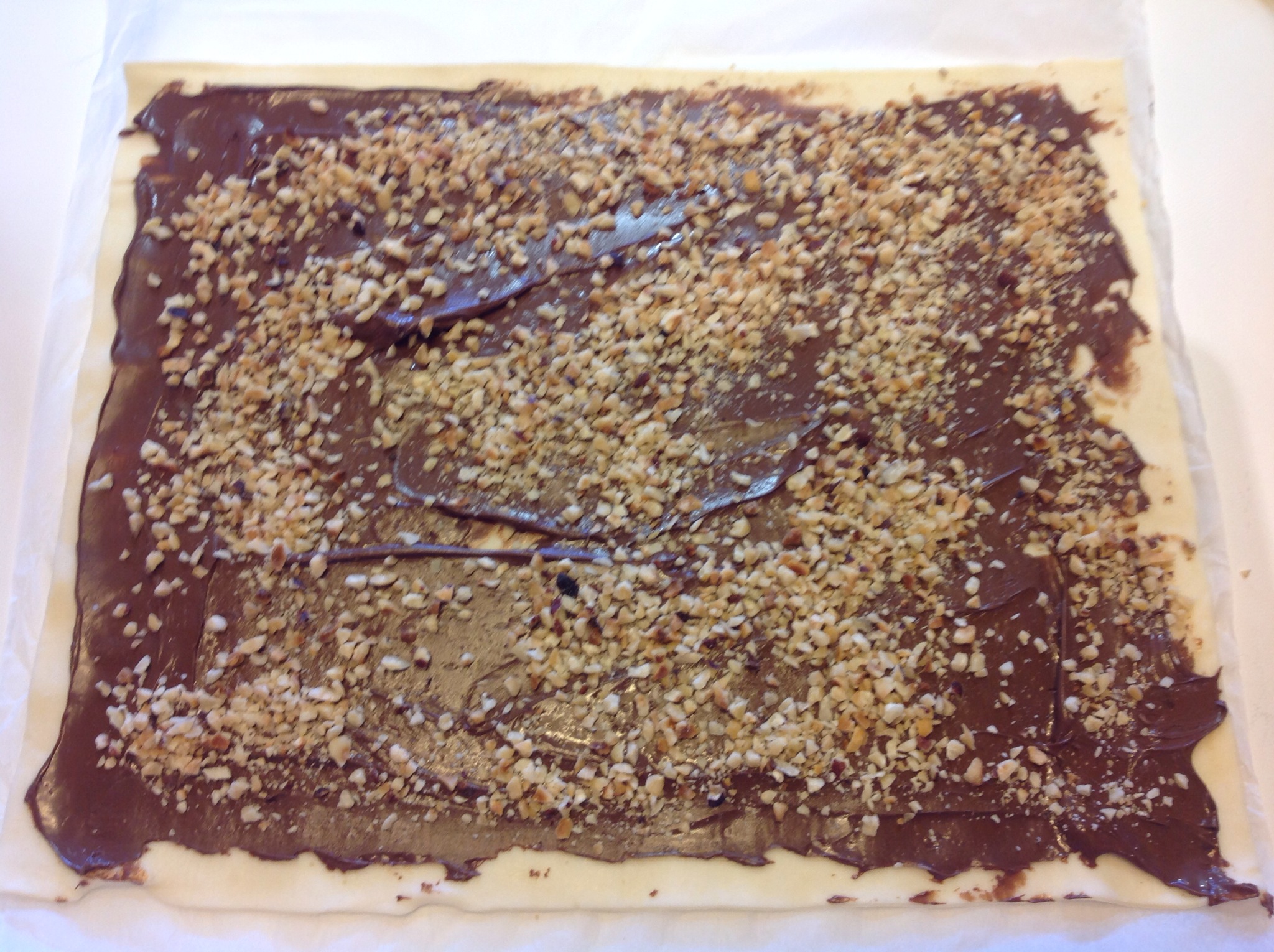 Stendo il rotolo di sfoglia e con una spatola lo spalmo con la Nutella