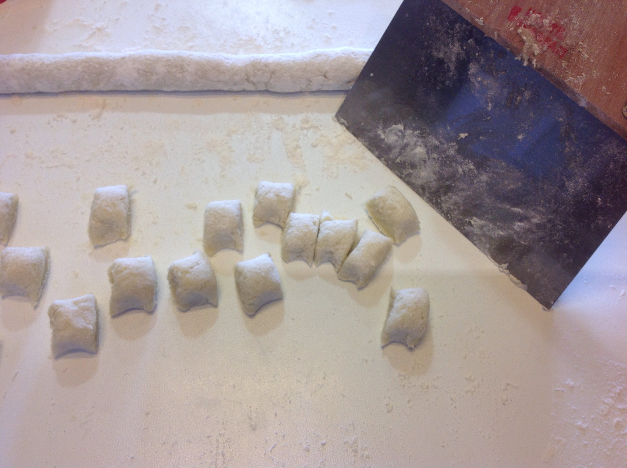 Procedo come per i normali gnocchi, preparo dei rotoli di impasto