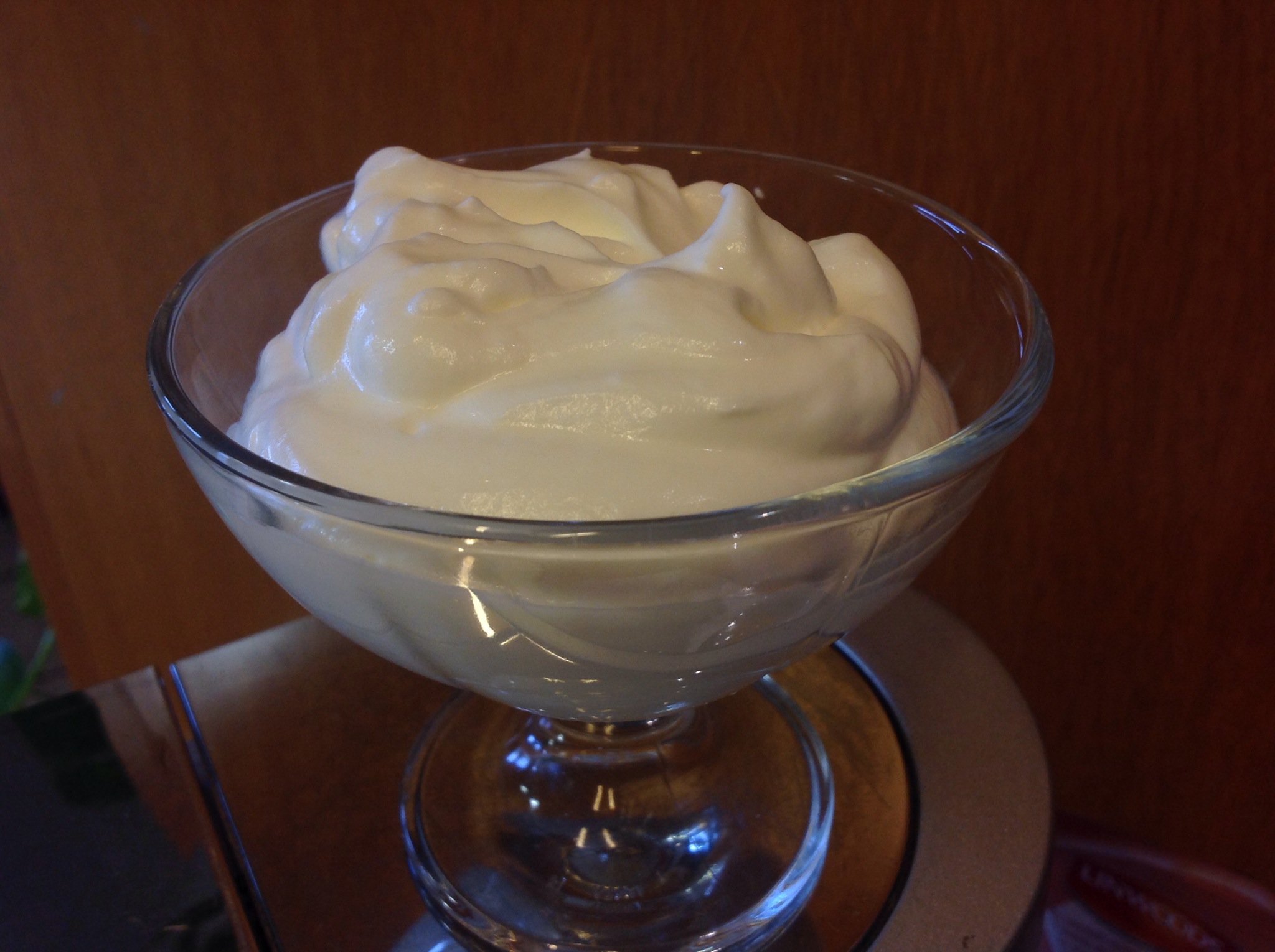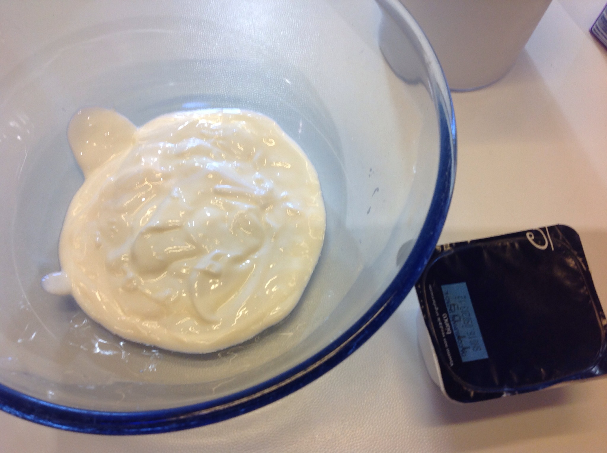 200 ml di yogurt bianco ( Müller bianco zuccherato con sciroppo d’uva)