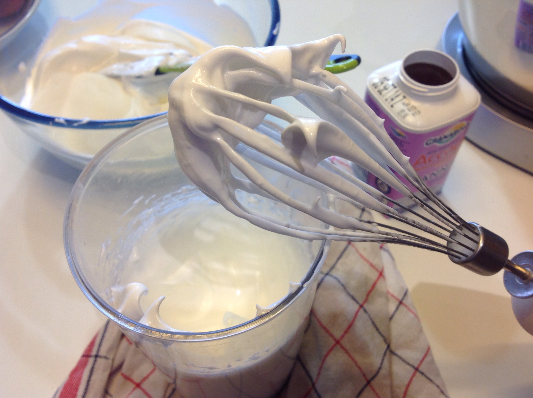Li monto aggiungendo poco per volta lo zucchero, devono essere montati ben sodi e formare il classico “becco”